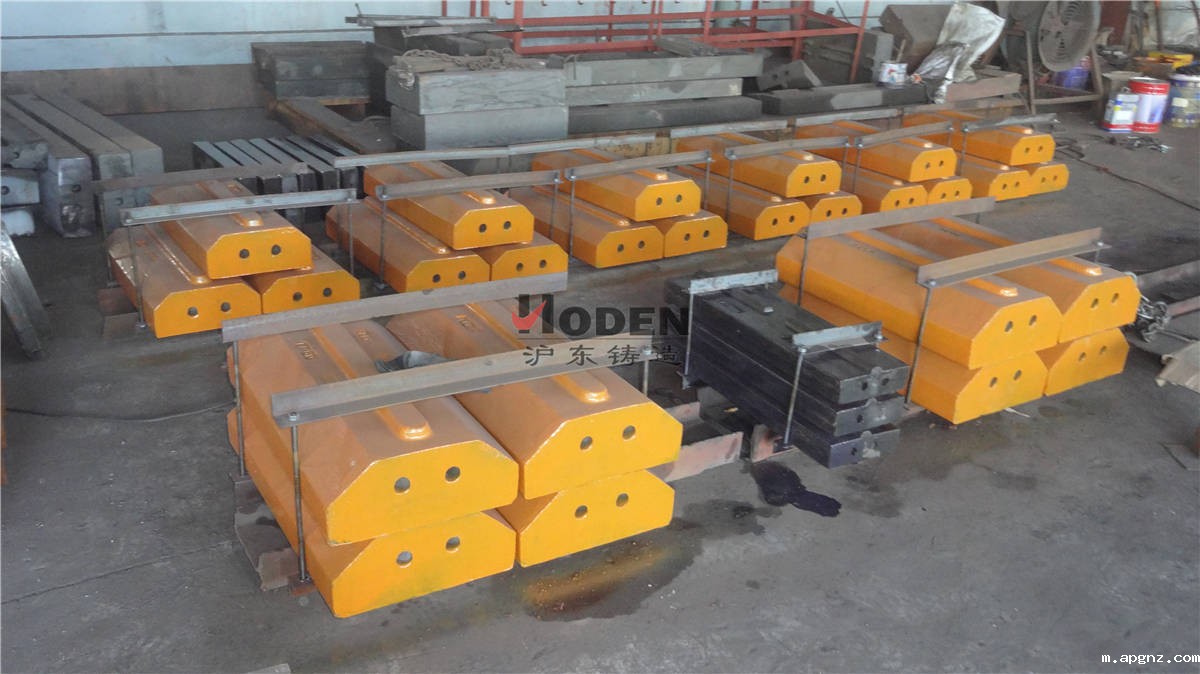 高铬板锤高铬铸铁所含主要元素为C、Si、Mn、S、P、Cr、Ni、Mo、Cu。碳是影响高铬白口铸铁韧性最大的元素。由于碳与铁、铬、钼等元素形成碳化物为高硬度相,如果它们呈网状分布,更会加剧脆性, 因此, 高铬抗磨铸铁的韧性主要取决于组织中的碳化物数量、形态、分布、大小。增加碳量, 可增加碳化物的数量,但会降低韧性和淬透性, 热裂倾向增大。因此碳不能过高,一般认为Cr/ C 为4~ 8时, 耐磨性较好。 高铬板锤高铬铸铁含铬量大于11%,铬、碳含量比值超过3.5。在这种条件下,高硬度型M7C3碳化物几乎全部代替了M3C型碳化物。
